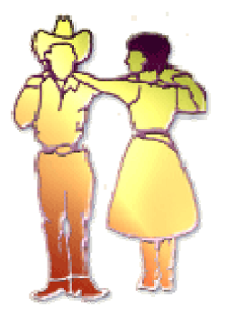 Les partenaires sont tournés en directions opposées, accrochés par le bras droit, se tenant les mains gauches avec les bras formant une arche au-dessus de leur tête, hanche droite contre hanche droite.